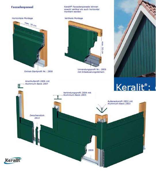 Keralit Fassadenpaneele - für waagerechte ,diagonale und senkrechte Verlegung geeignet